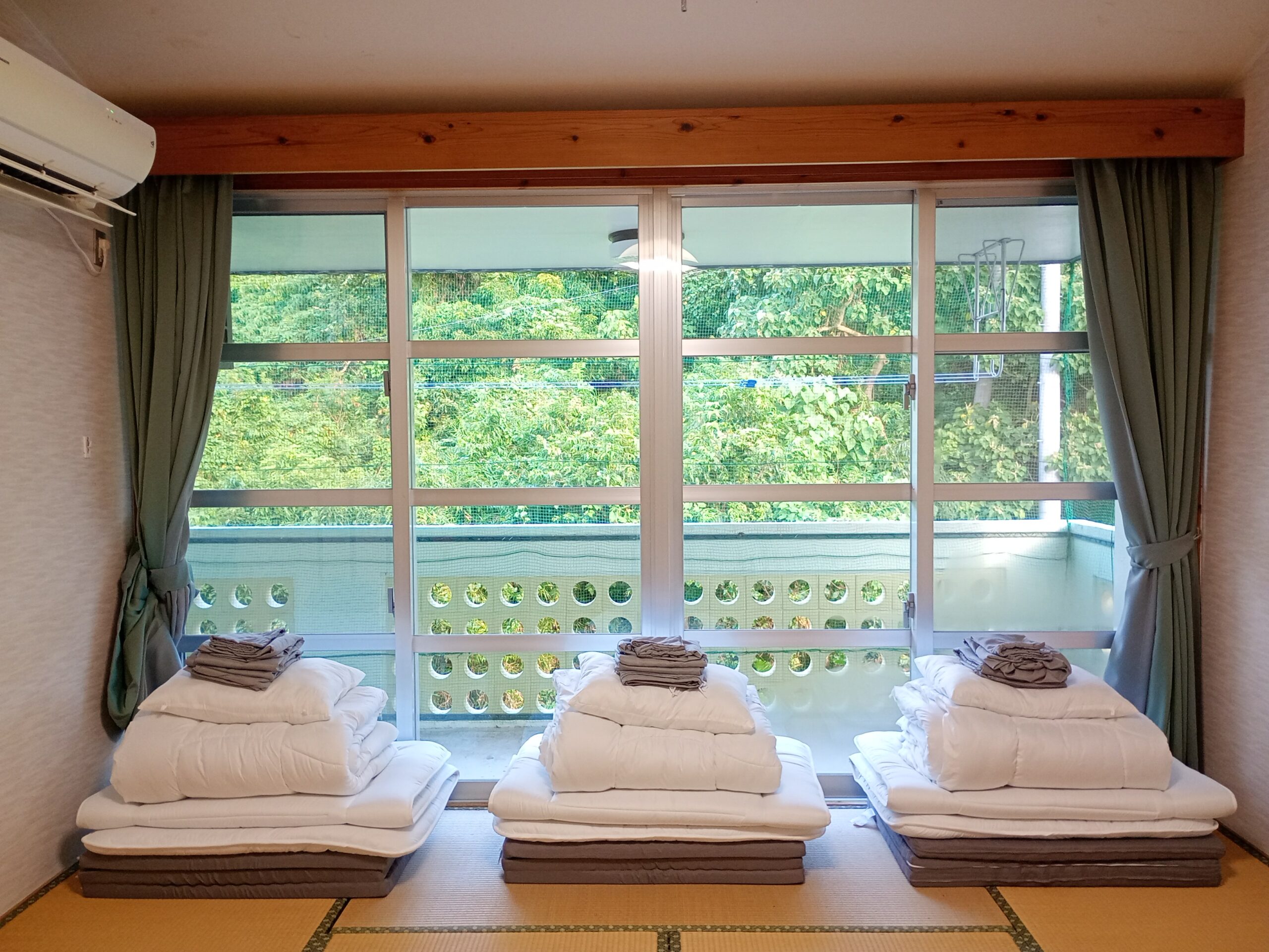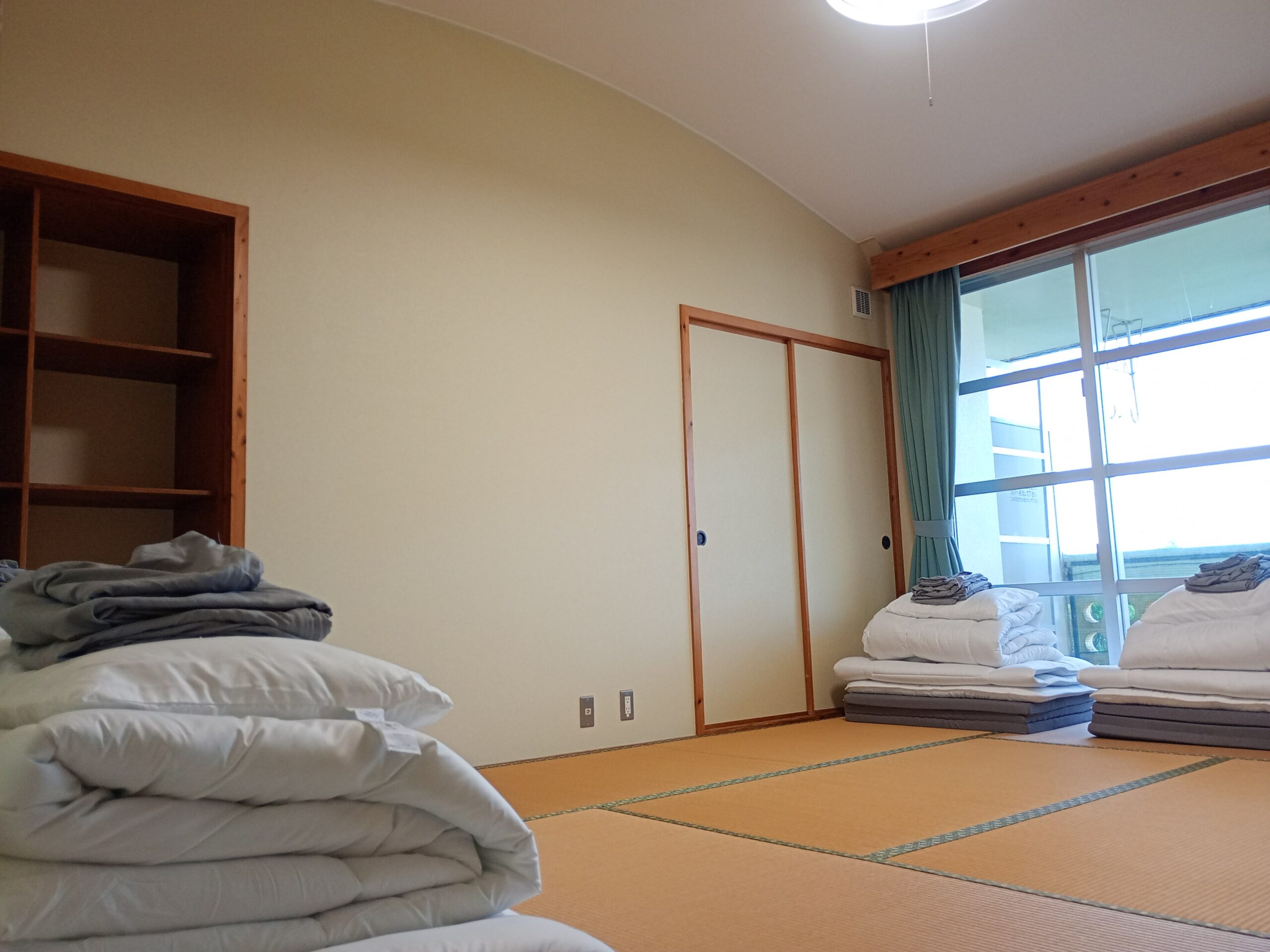 ※各客室の掛布団、敷布団、枕は、ご予約当日までにスタッフがご予約人数分をセッティング致しますが、寝具カバー類の着脱と所定場所へのご返却はお客様ご自身にお願いしております。予めご了承ください。