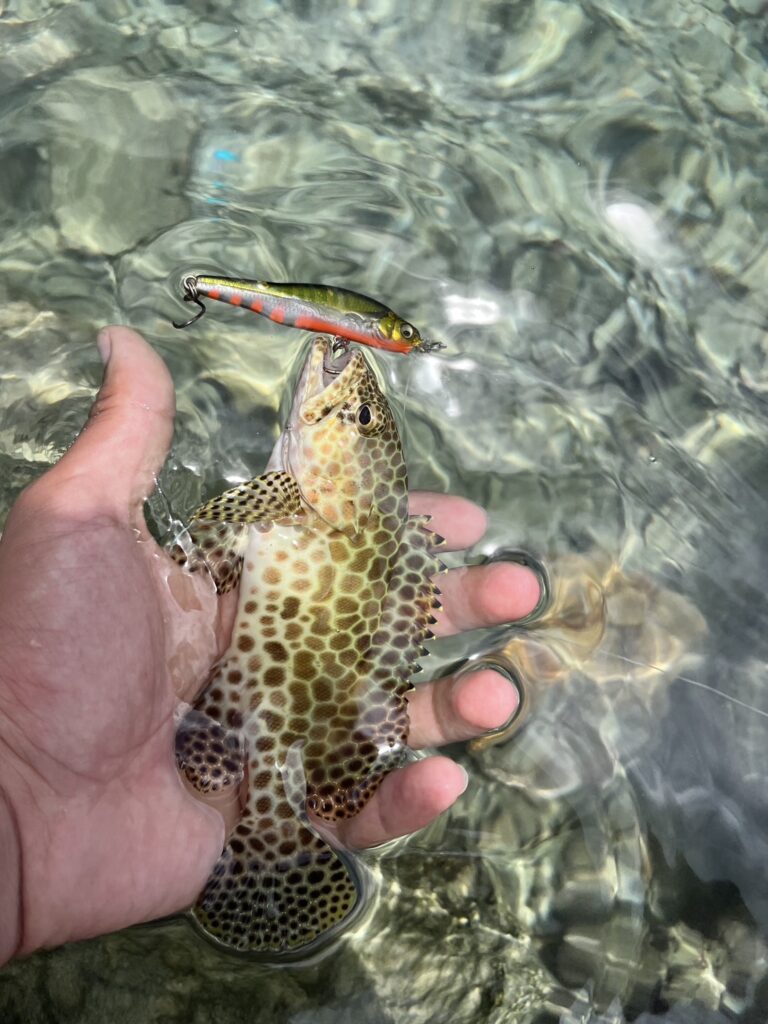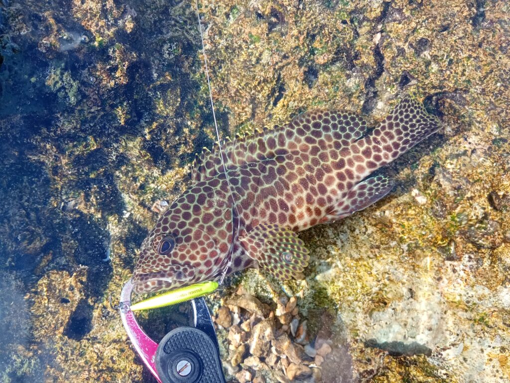 状況判断でガイドが選ぶ様々なルアーを使って、いざ実釣です!初級者コースの方の目標は、イシミーバイとその他の魚種で5匹以上釣り上げる!です。
