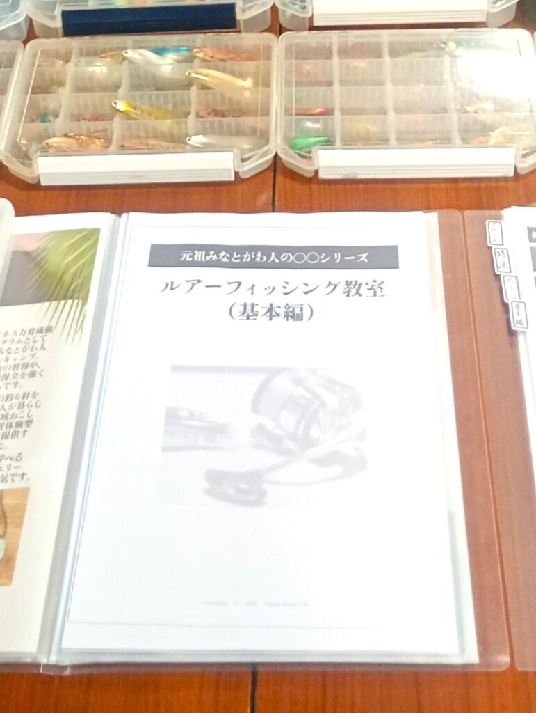 まずは練習用オモリでキャスティング反復練習。キャスティングに慣れてきたら数種類のルアーを投げて、巻いて、ルアーを泳がせる感覚を掴んでいただきます。基本編はここまでです。
